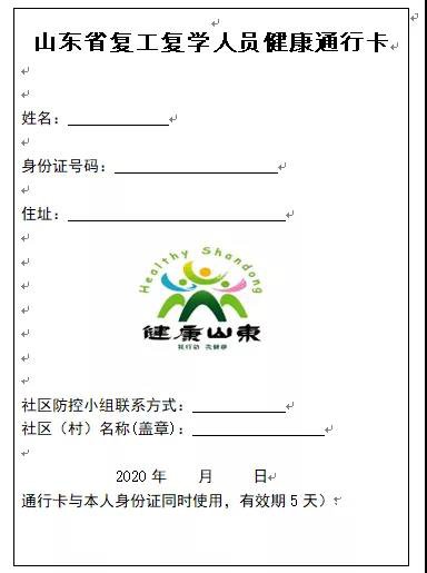 山东省复学复工人员健康申报表啥样(山东省复工复学健康通行证)