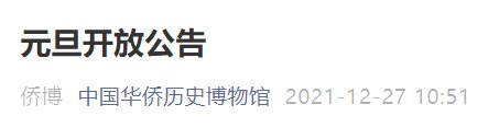 2022中国华侨历史博物馆元旦开放公告