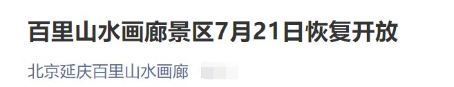 7月21日起北京百里山水画廊景区恢复开放的通知