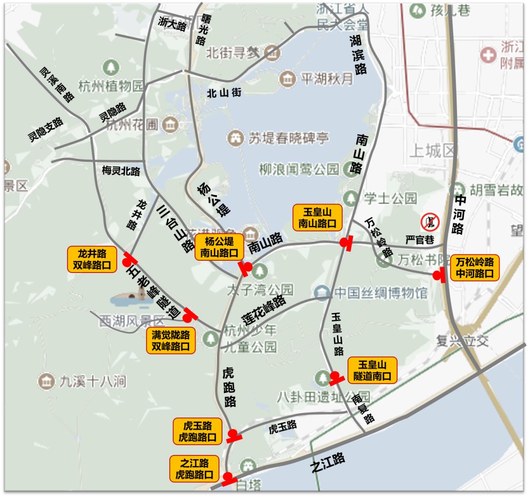 针对春季游客较为集中的西湖景区南线与龙井景区,交警蜀黍将视情在外围路口采取分流或限流措施,减少进入景区的机动车数量,驾驶员朋友可至相应换乘、接驳点,换乘公交进入景区。