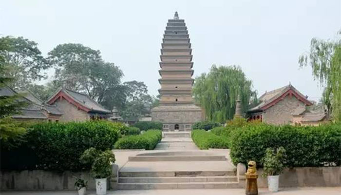 三圣塔在河南焦作沁阳市。三圣塔塔总高32.76米,分为基座、塔身、刹顶三部分,于金大定11年建造,有砖塔怀抱木楼阁、结构独特、塔内石刻资料丰富三绝,是全国重点文物保护单位。