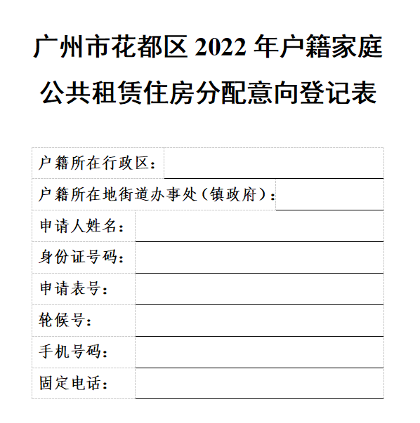 广州市花都区2022年户籍家庭公共租赁住房分配意向登记表下载