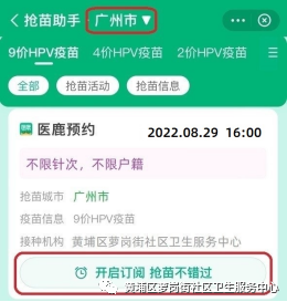 黄埔区萝岗街社区HPV疫苗预约操作流程(8月29日)
