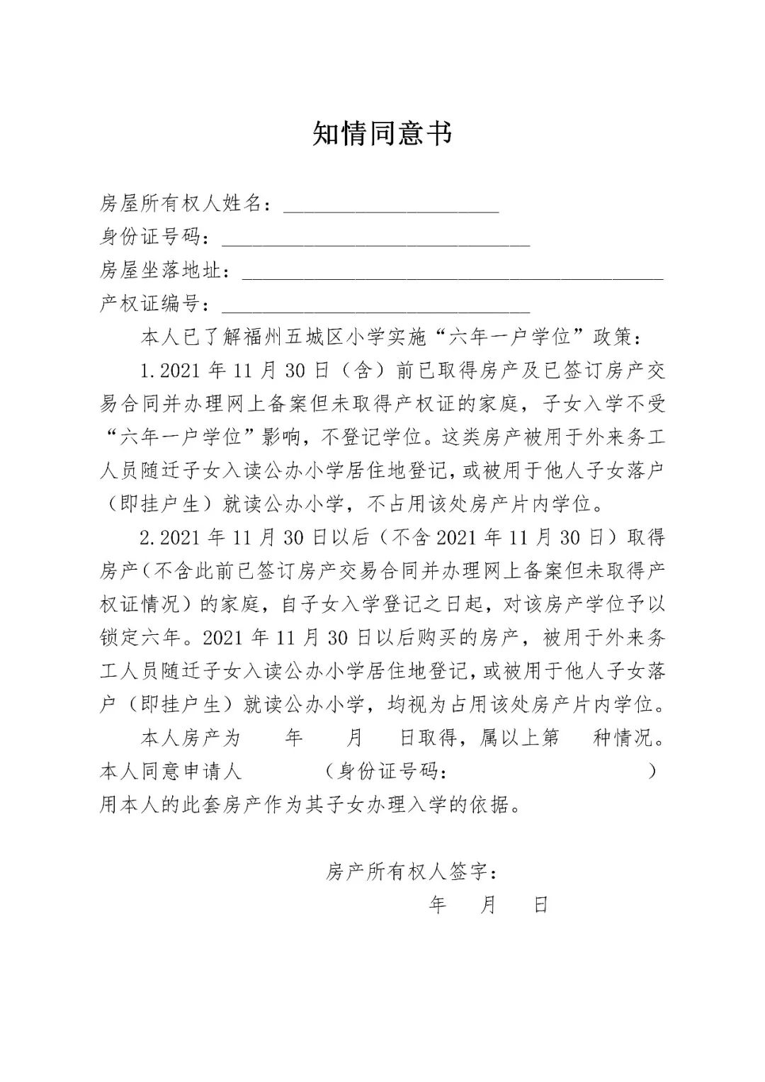 ③常住地址所在房产的业主出具的知情同意书(业主签字、盖手指印)