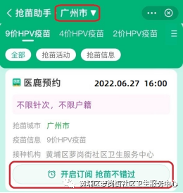 8月29日黄埔区萝岗街HPV疫苗预约几点开始?
