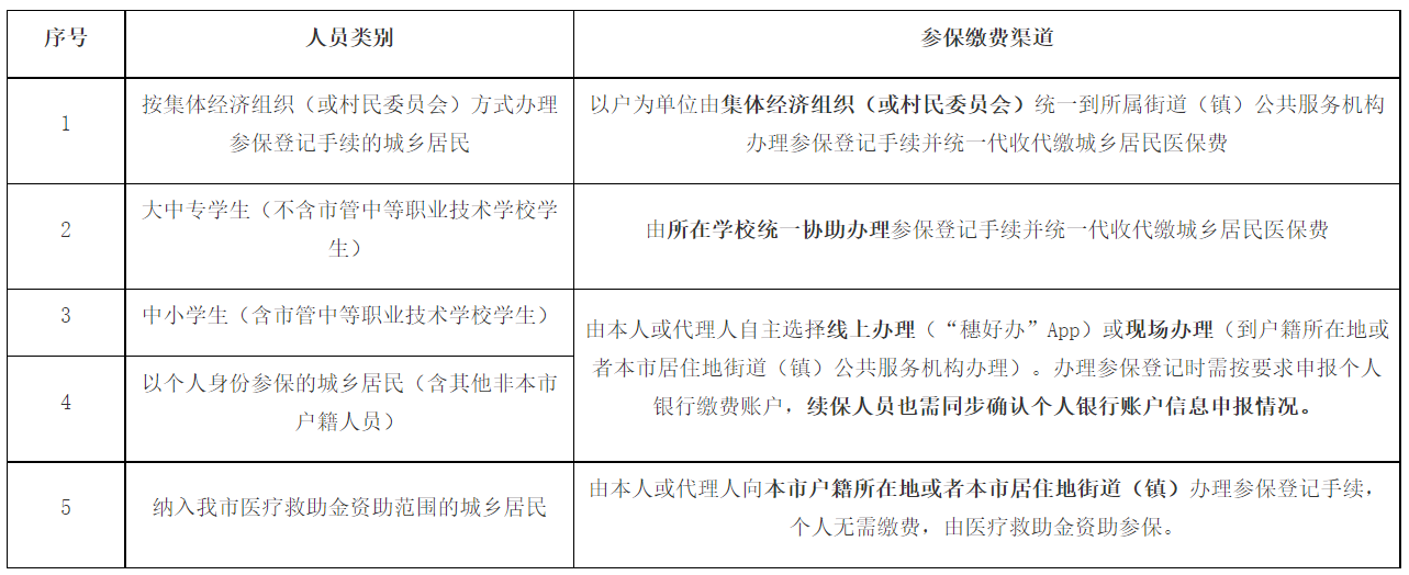 已参加2022年度城乡居民医保且仍符合2023年度城乡居民医保参保范围的(城乡居民医保个人参保状态显示为“正常参保”)的,无需再办理2023年度参保登记手续,国家医保信息平台将默认自动延续参加2023年度城乡居民医保;如已办理停保手续或在我市首次参保(城乡居民医保个人参保状态显示为“暂停参保”或“未查询到对应年度参保信息”),则需按以下渠道办理: