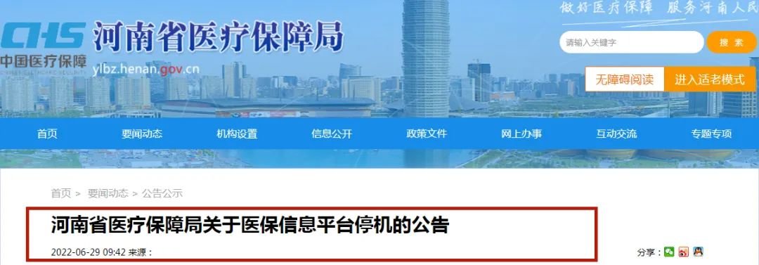 停机期间,暂停办理全省城镇职工基本医疗保险、城乡居民基本医疗保险的所有医保业务。同时河南医保微信小程序、河南医保支付宝小程序、河南医疗保障公共服务平台(网厅)等将全部暂停。