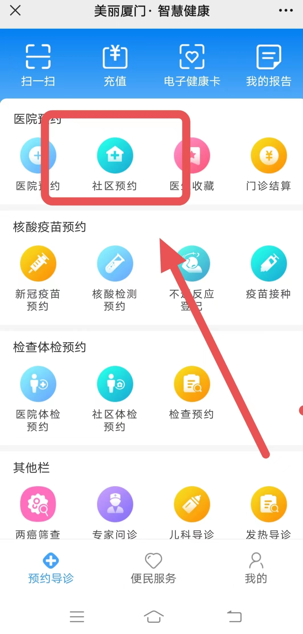 通过“美丽厦门智慧健康”公众号选择“预约导诊”