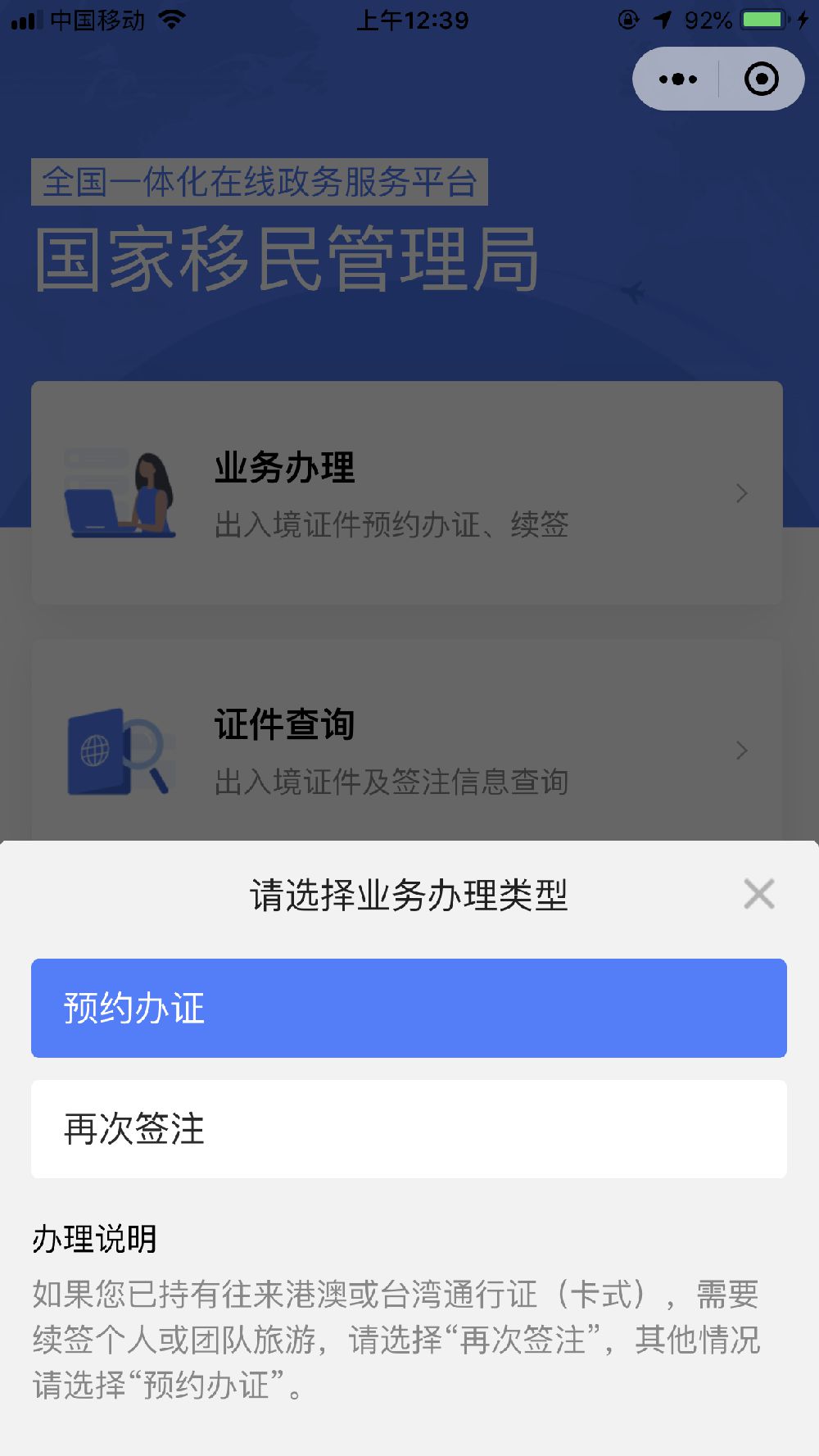 国家移民管理局政务服务平台于2019年4月1日上线,24小时网上服务,市民可登录服务网站、国家移民管理局APP等预约申请办证、办理往来港澳台旅游签注、查询证件进度、出入境记录等。