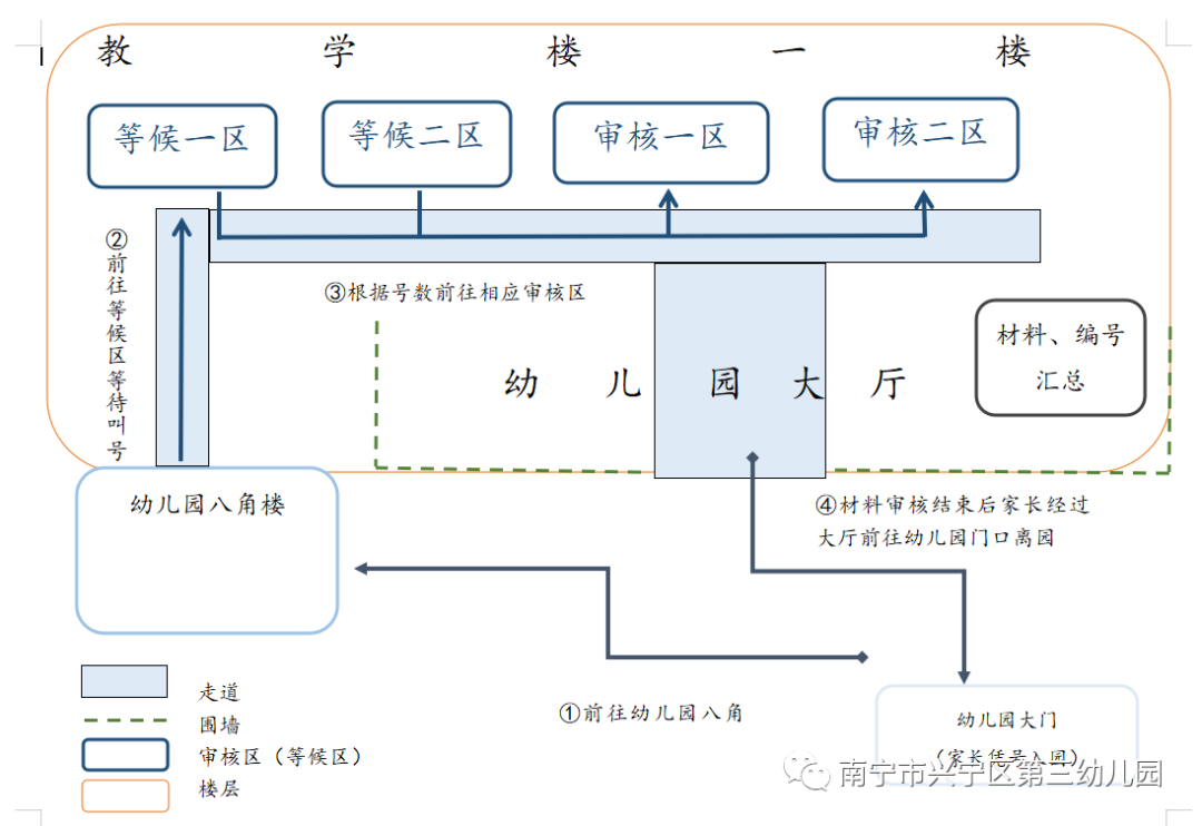 3.家长在等候区等待叫号,再前往审核区进行材料审核。