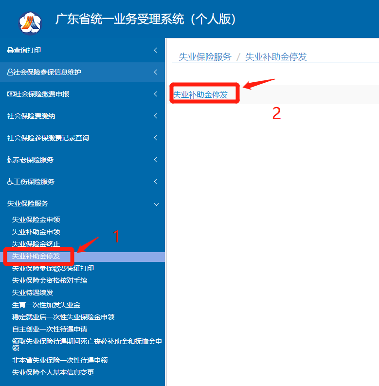 第三步:按页面提示登录后,找到失业保险服务--失业补助金停发--申报(按照页面提示操作,并且提交材料即可)。
