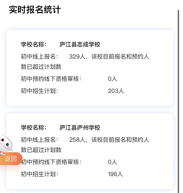 锦弘中学:计划650人,报名人数1482,其中3对双胞胎分别申请作为一个摇号单位,实际1479人参加分组摇号,共分147组,其中138组10人,9组11人,拟摇出65组;