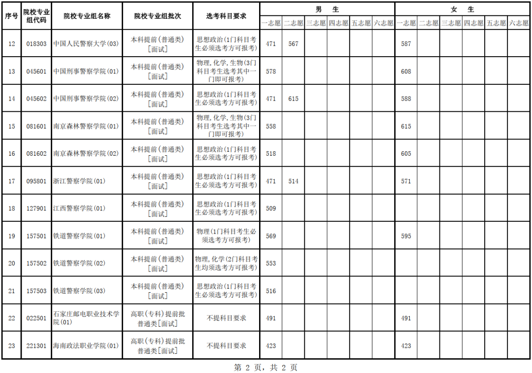 2022海南公安司法本科提前批院校面试最低控制分数线
