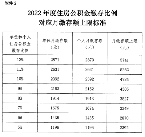 (2)最高月缴存额为5741元,各缴存比例对应的月缴存额上限,按照《2022年度住房公积金缴存比例对应月缴存额上限标准》(附件2)执行。