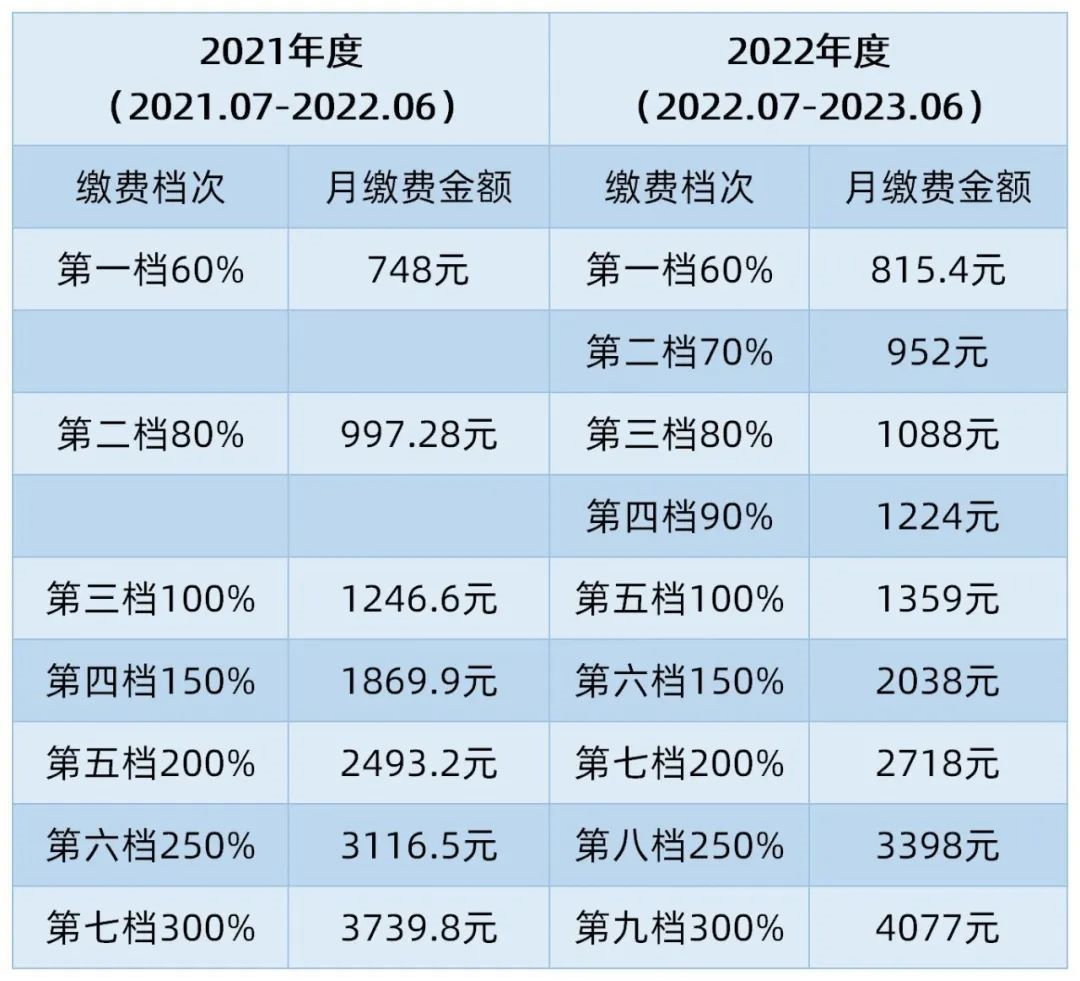 武汉灵活就业人员2021年度和2022年度基本养老保险缴费档次对比