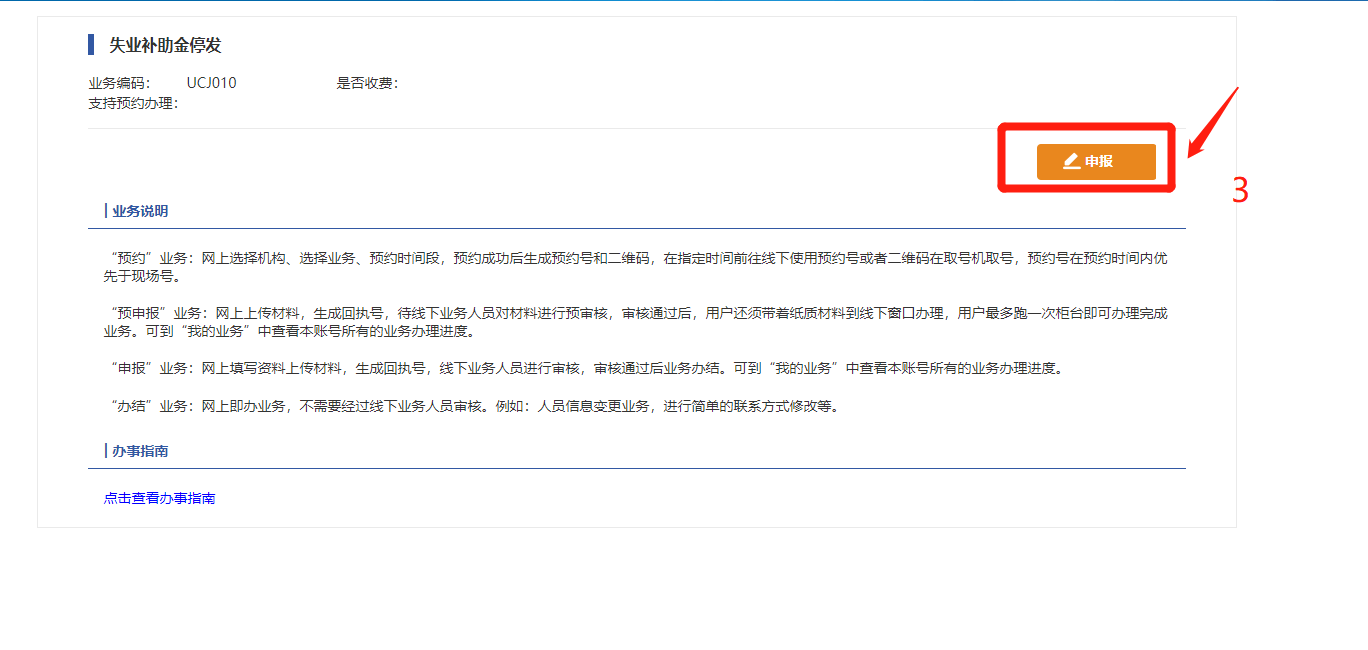 第三步:按页面提示登录后,找到失业保险服务--失业补助金停发--申报(按照页面提示操作,并且提交材料即可)。