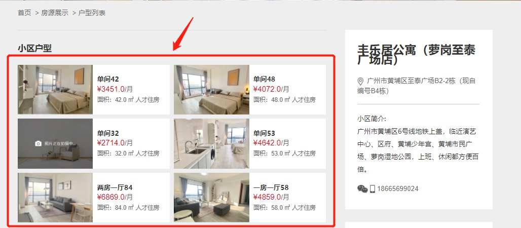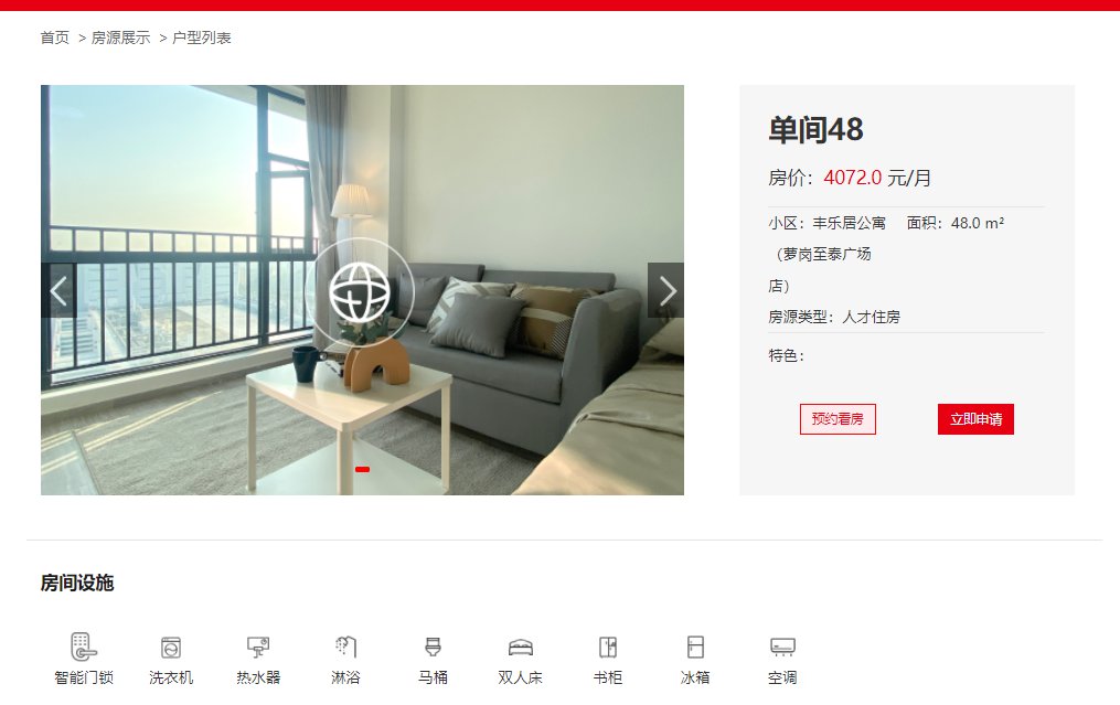 第三步:在丰乐居公寓或佛伦斯中心房源中,找到自己想要看的户型,上面也有对应户型租金、面积的介绍,如下图所示: