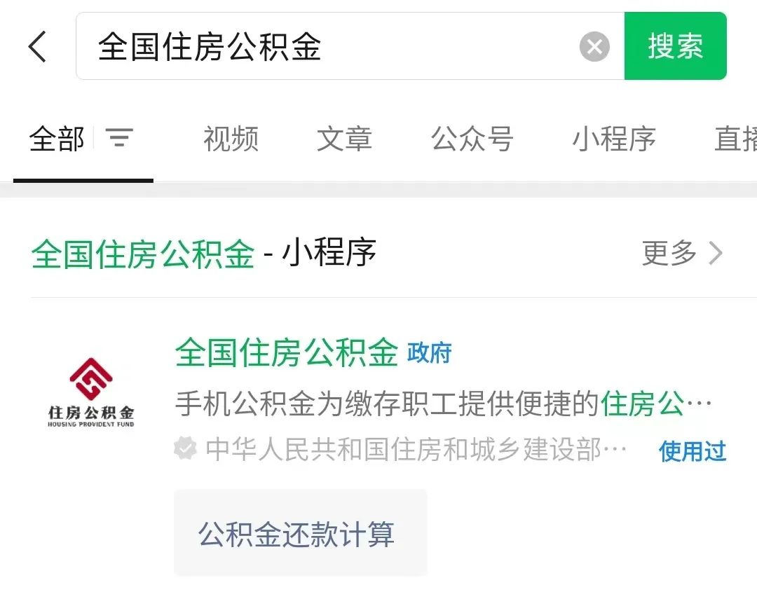 微信搜索并进入“全国住房公积金小程序”