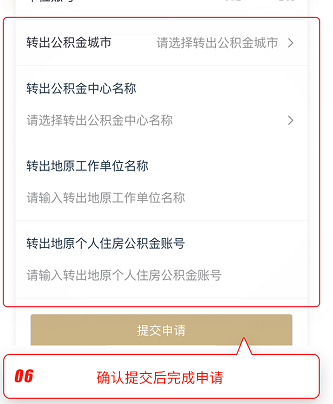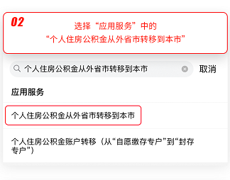 第二步:选择应用服务中个人公积金从外省市转移到本市