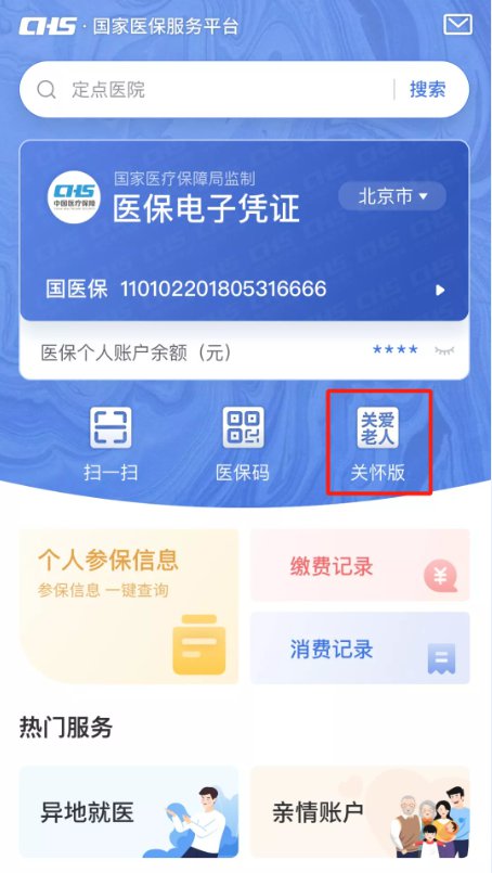 为进一步推动解决老年人在运用智能技术方面遇到的困难,方便老人使用医保电子凭证,国家医保服务平台APP新增关怀版,将页面化繁为简,按钮放大。