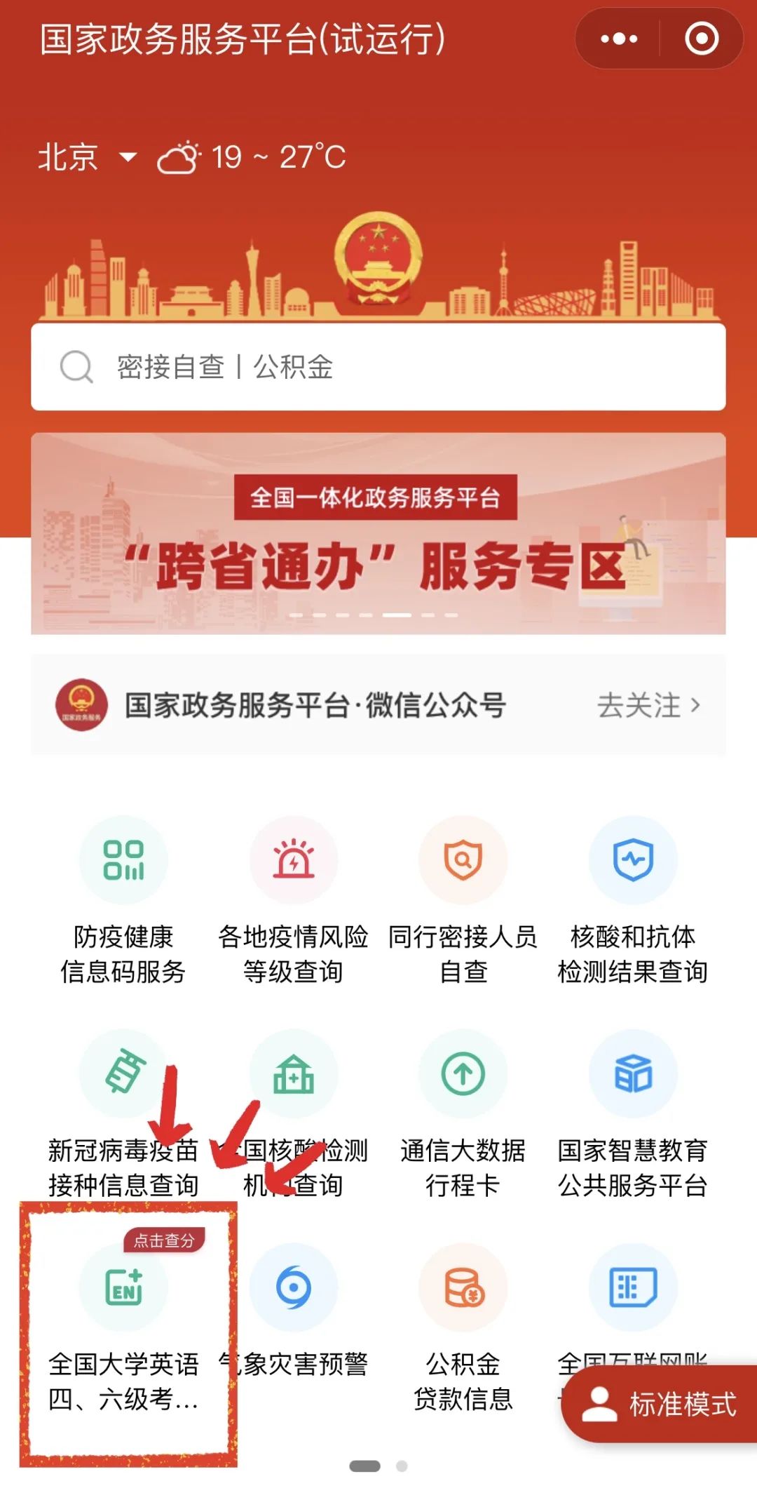 除了国家政务服务平台微信小程序入口,现在还可以通过微信搜一搜,搜索“四六级成绩”前往服务,助你查分快人一步!