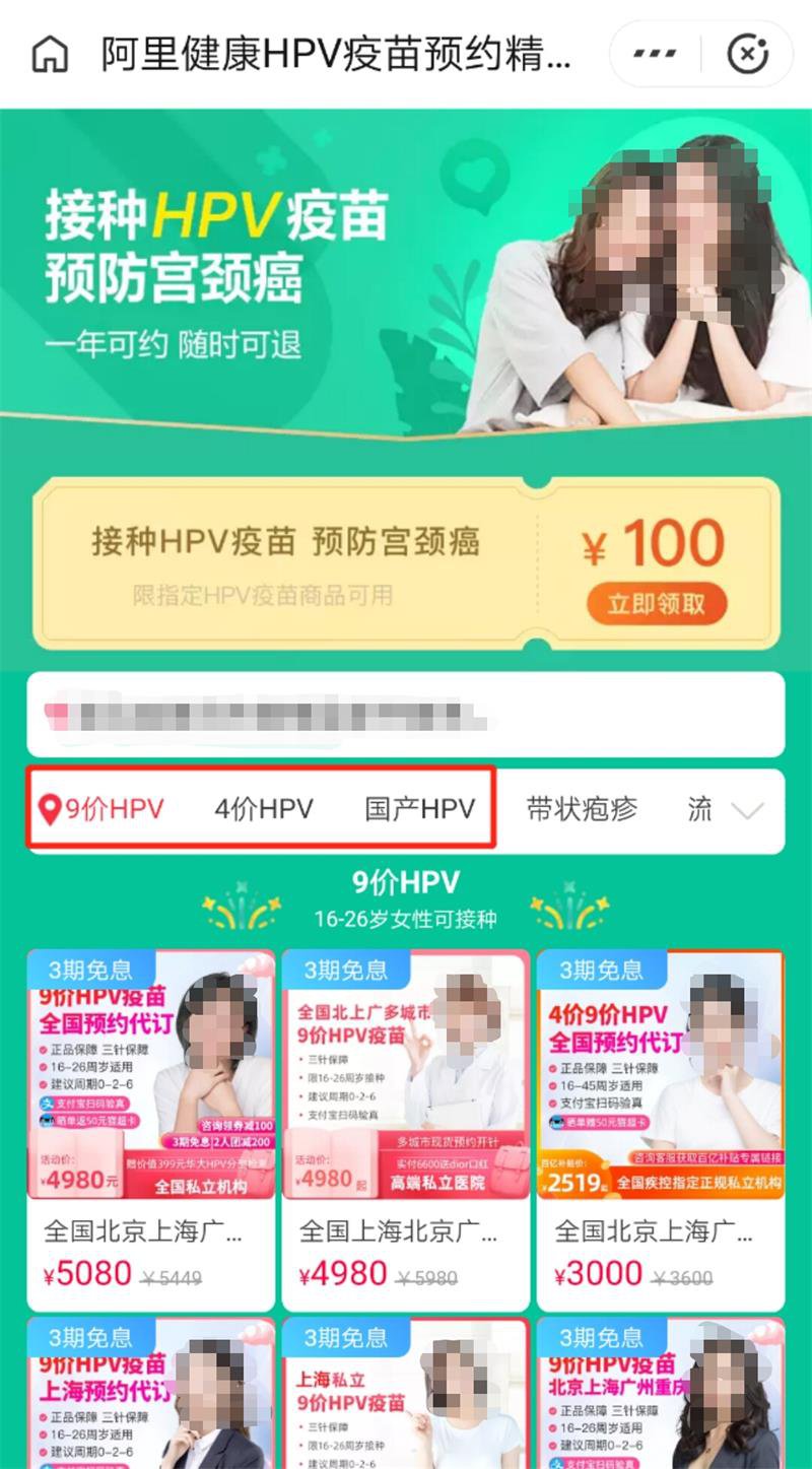 第二步:进入页面,选择9价或者4价或者2价疫苗。