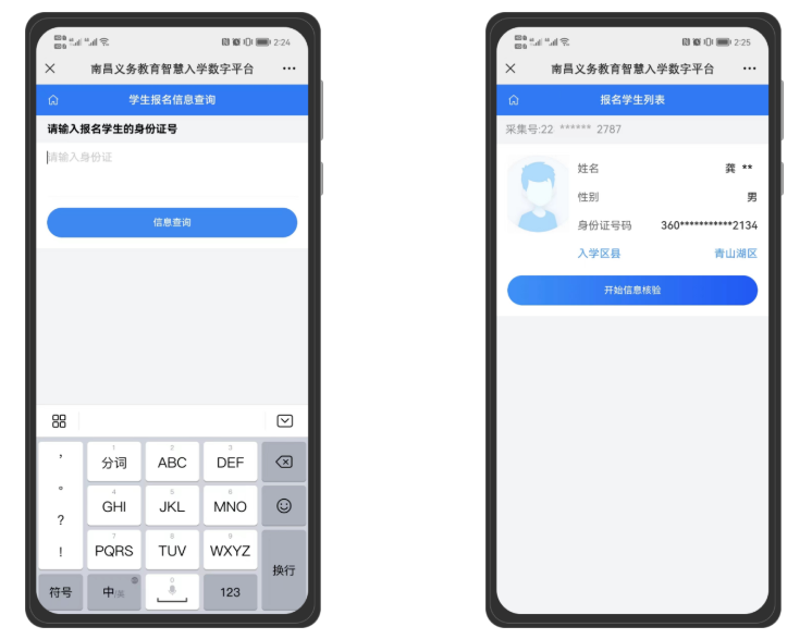 ➤2022年南昌义务教育智慧入学数字平台小升初入学信息核验操作流程: