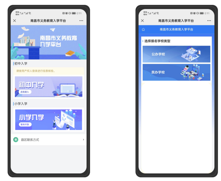 小学毕业生监护人从“i南昌” 智慧入学场景进入平台,选择“初中入学-公办学校”端口报名登记;