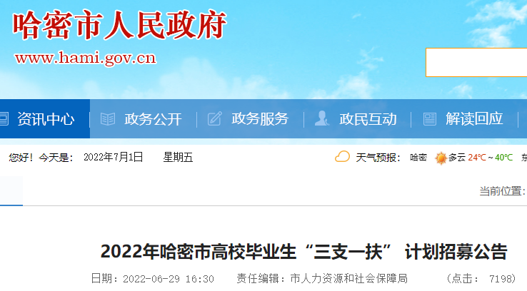 2022年哈密市高校毕业生三支一扶计划招募公告
