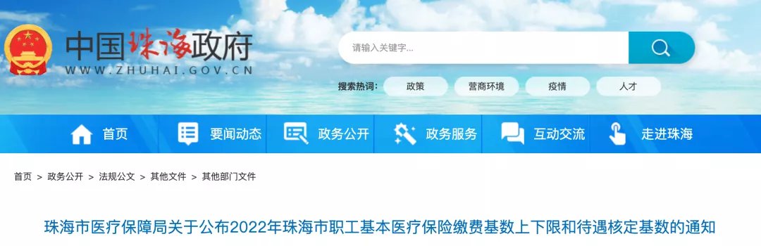 自2022年1月1日起,珠海市职工基本医疗保险(含生育保险,下同)缴费基数上下限和待遇核定基数按新标准执行!