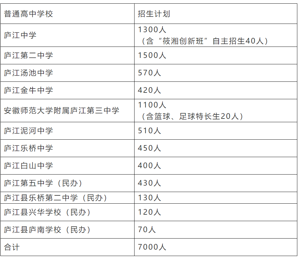 2022年,庐江县参加初中毕业学业水平考试(中考)学生共11032人,其中,700分及以上167人,650分及以上1830人,600分及以上4038人,550分及以上5650人,494分及以上7065人。