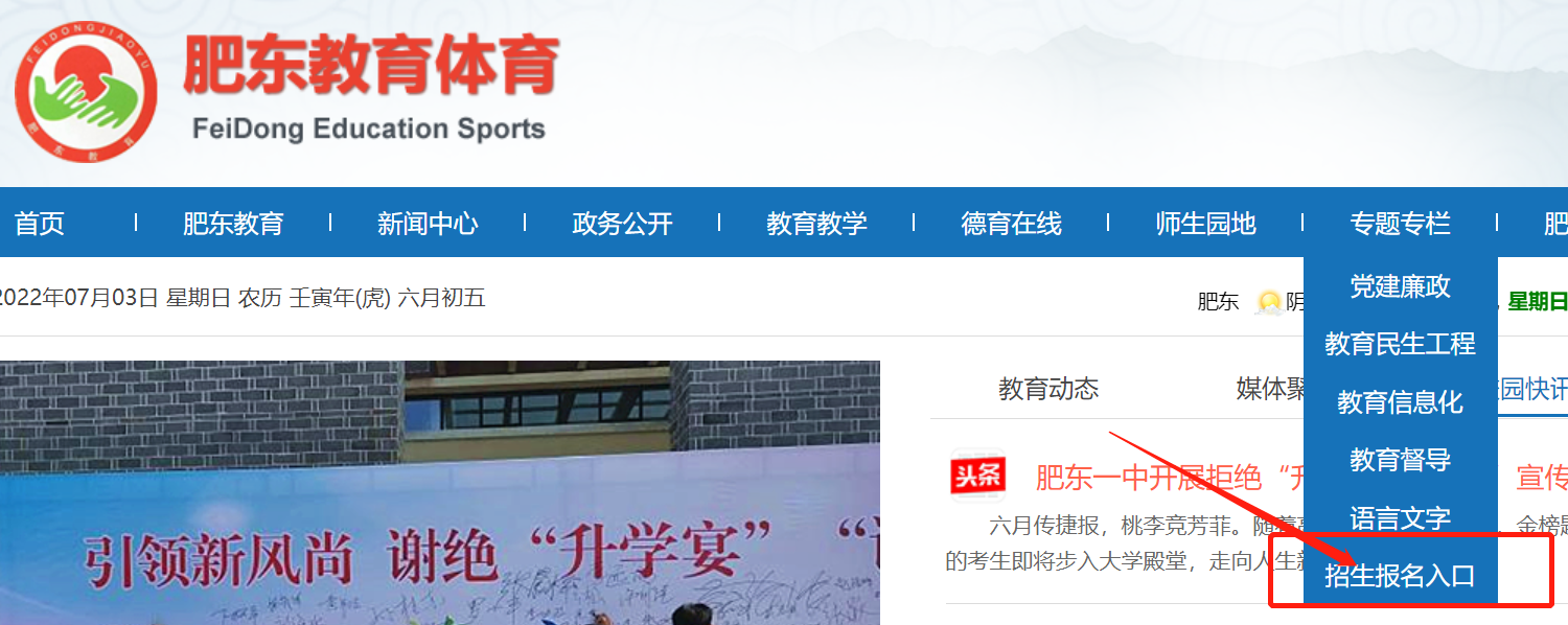 肥东县教体局网站招生报名入口专栏(网址:http://fd.hfzsks.org/)(如遇访问量过大,出现堵塞现象,请选择以下查询方式)。