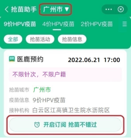 8月30日白云区江高镇卫生院水沥院区九价疫苗预约通知