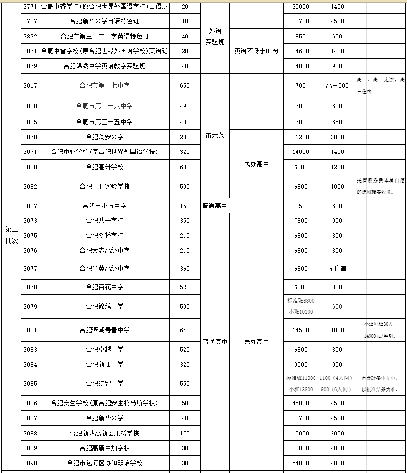 2022年合肥市中考第三批次志愿学校有哪些?(附招生代码)