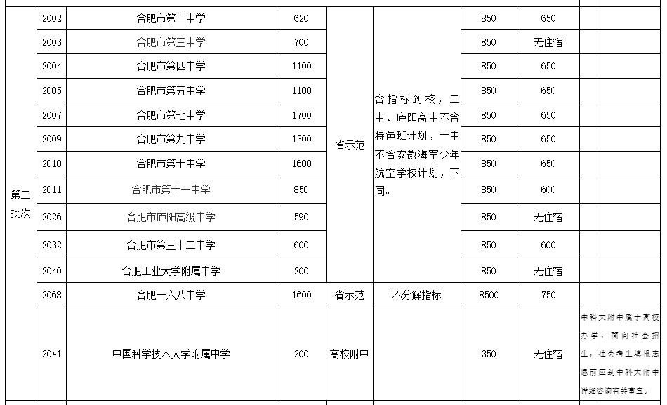 2022年合肥市中考第二批志愿学校招生代码汇总