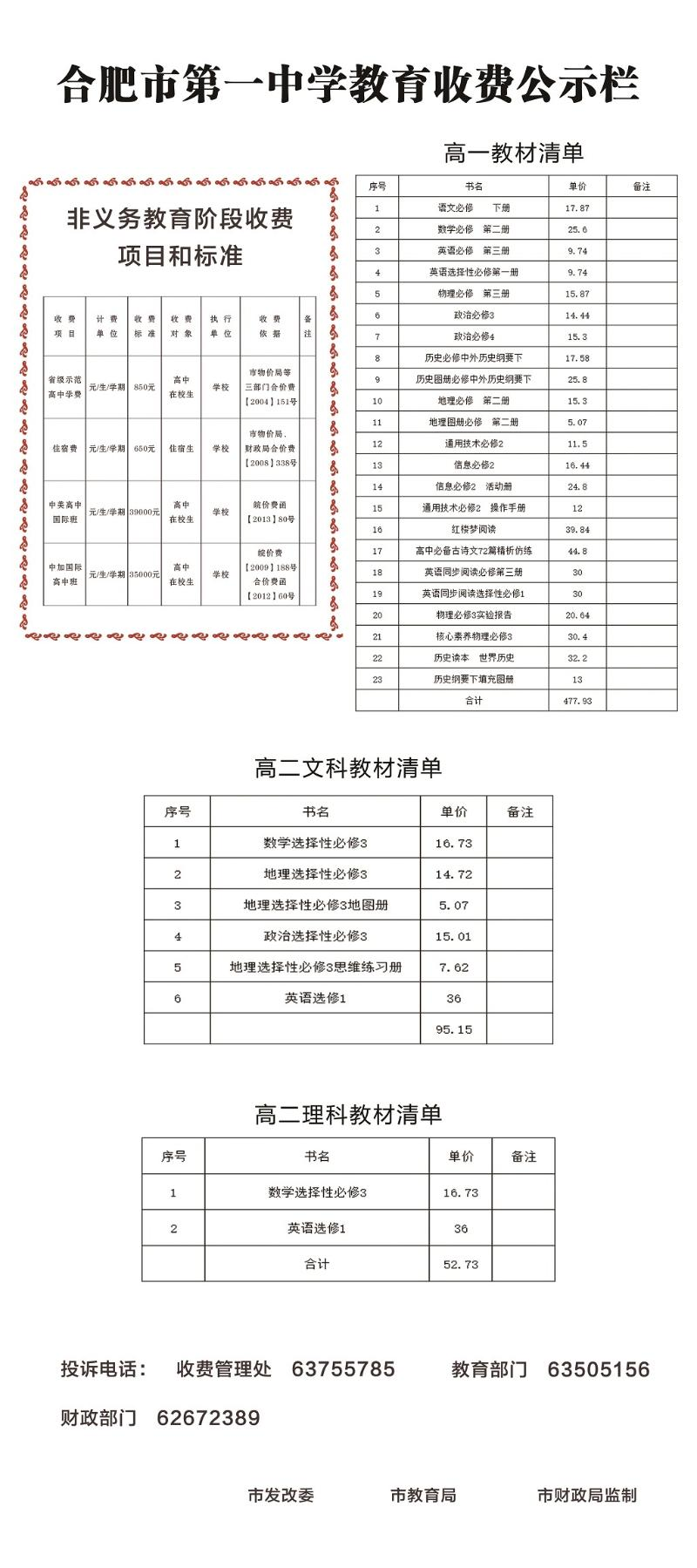 2022年合肥市第一中学收费标准表(2022年合肥市第一中学收费标准表格)