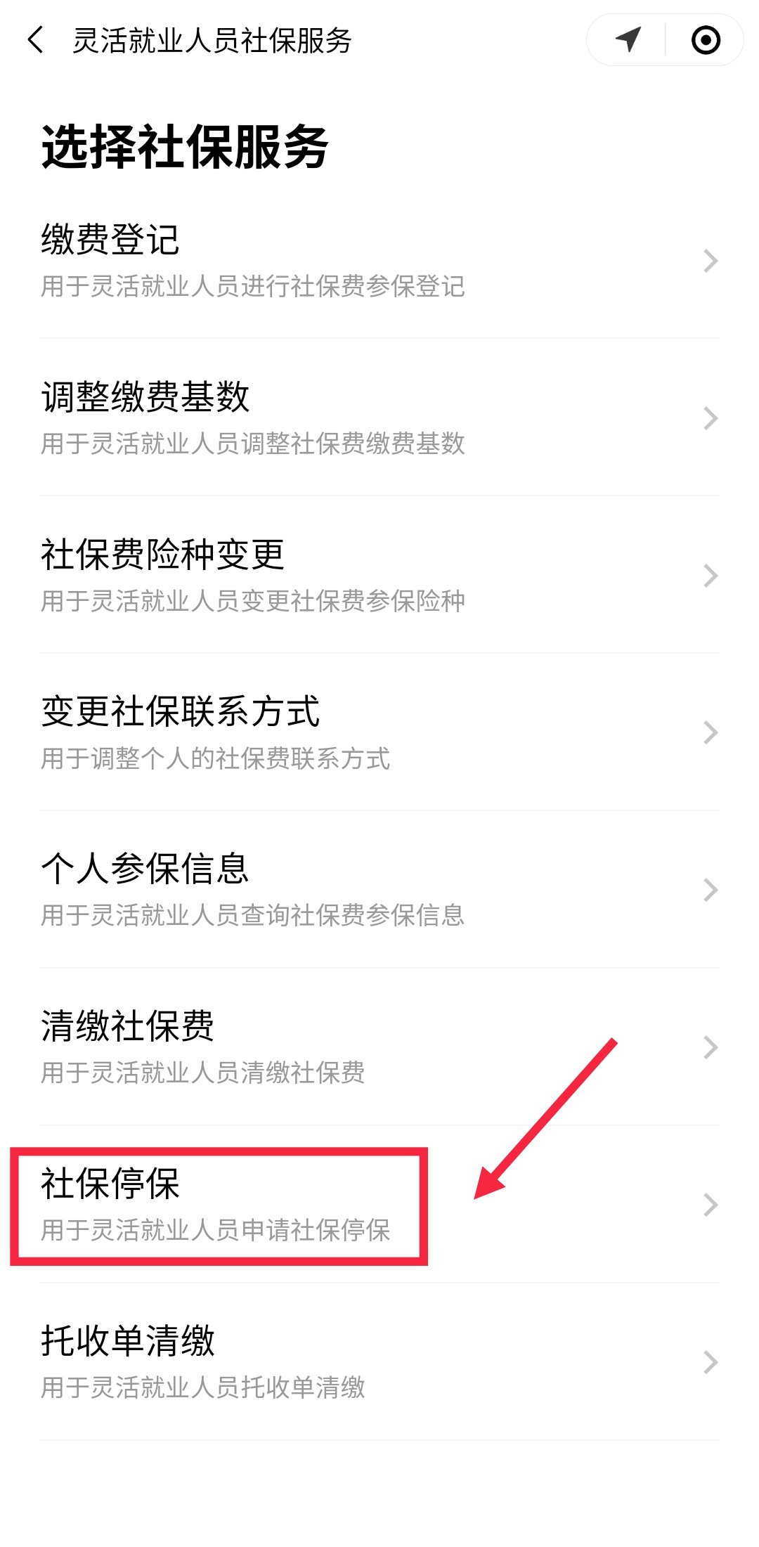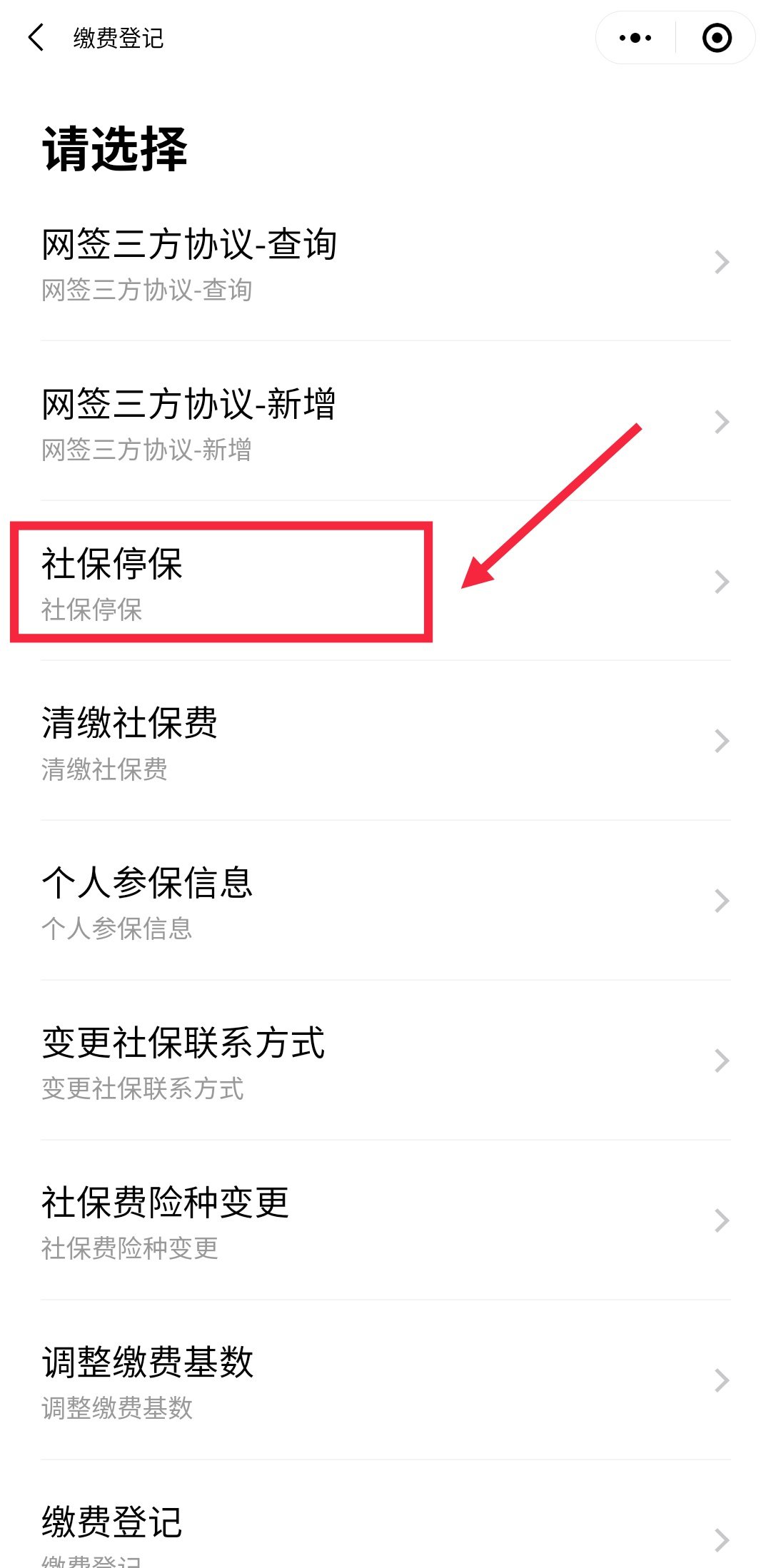 第三步:在页面中找到并点击【社保停保】,如下图所示;