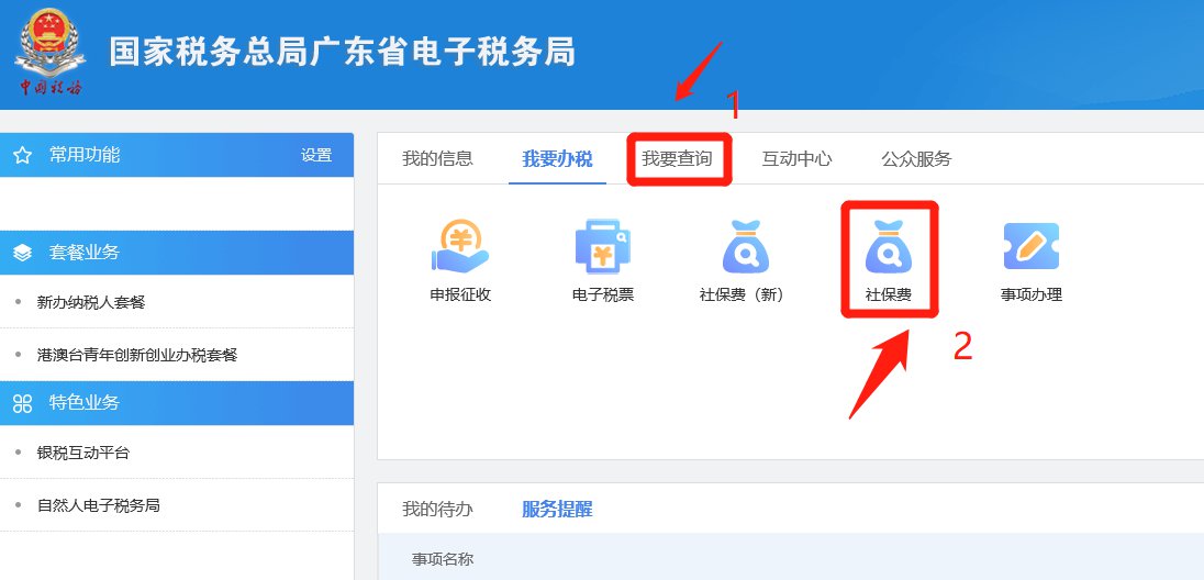 第二步:在页面中选择【我要查询】--【社保费】,如下图所示;