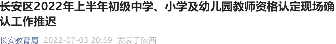 西安长安区2022上半年教资现场认定推迟了吗