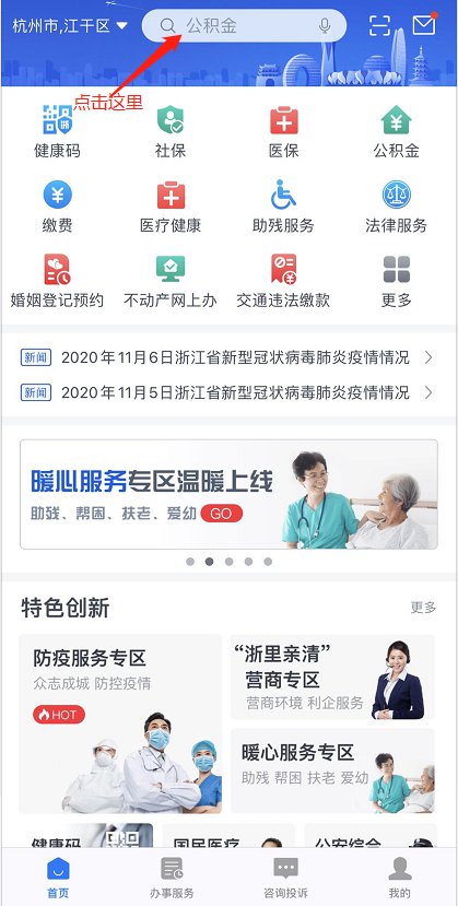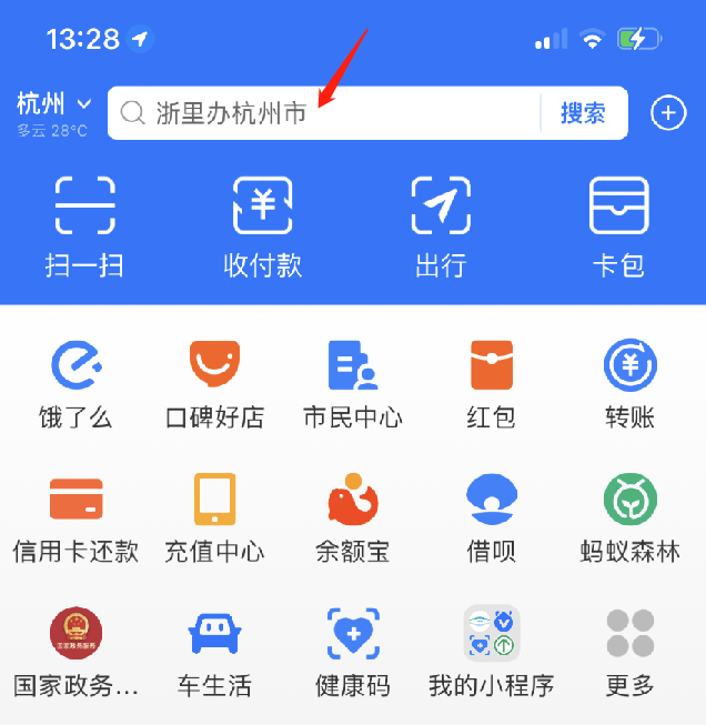 1.打开浙里办APP,点击上方搜索框进入搜索栏。