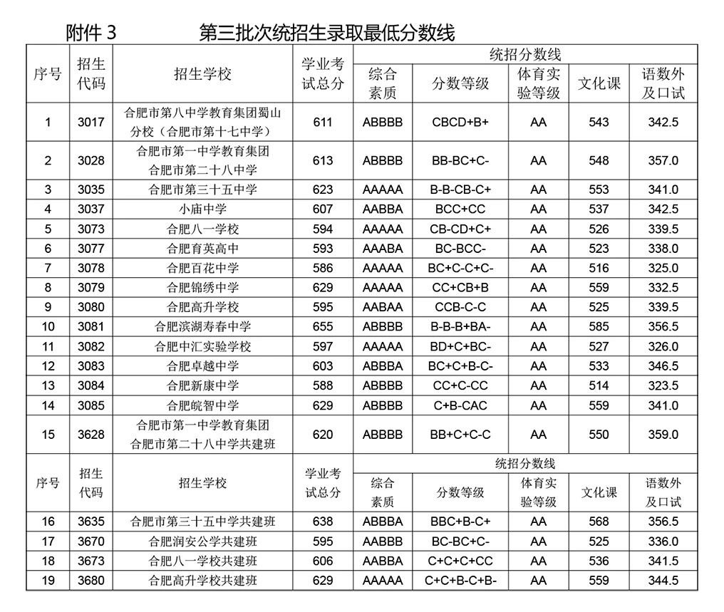 2022合肥市区中考最低分数线一览 2020年合肥中考最低分数线