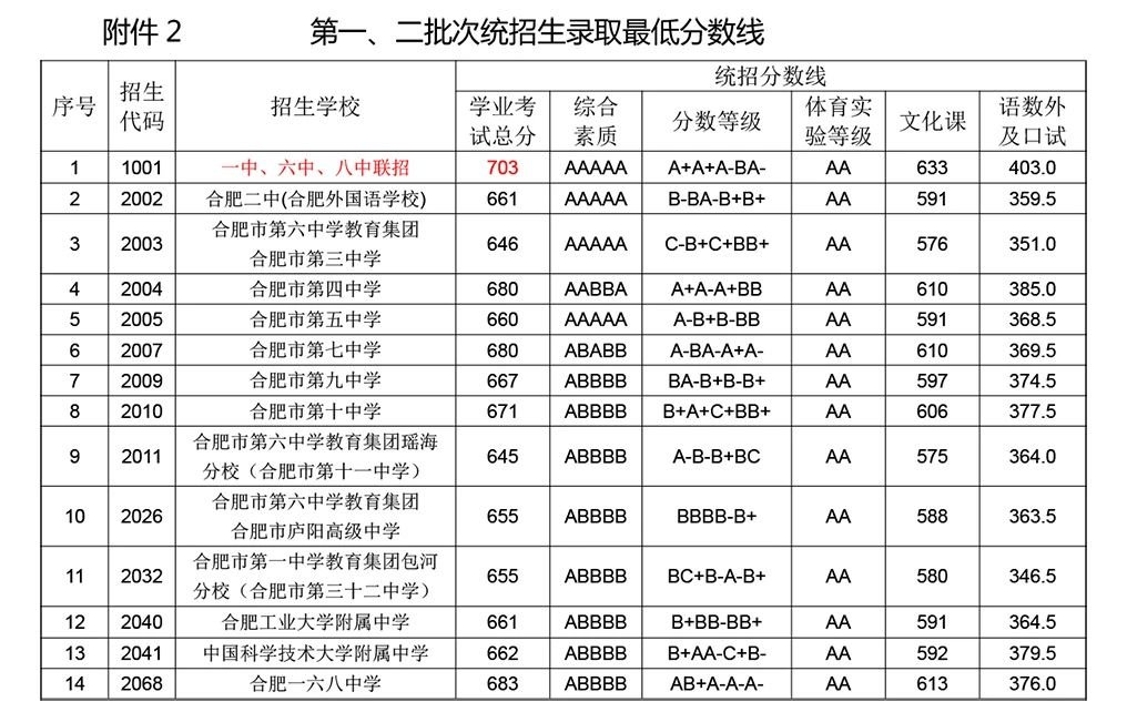【推荐阅读往年分数线】2021年合肥中考分数线