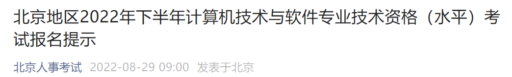 2022北京下半年计算机技术与软件考试报名时间+提示