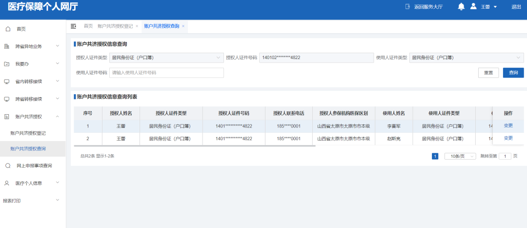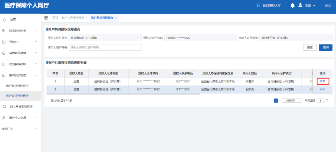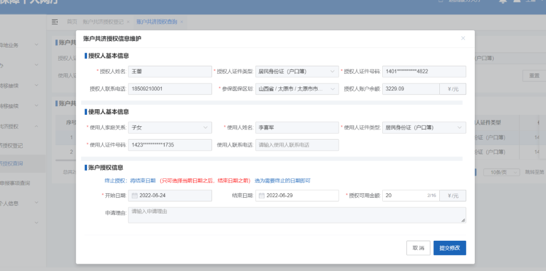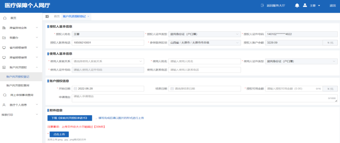 授权条件:共济账户的授权人只能为参与职工险种人员(公费医疗除外),被授权人只能是父母、配偶、子女且参加山西省职工或居民基本医疗保险(公费医疗人员除外);且父、母、配偶在有效绑定期内只能绑定一人;子女不做限制;授权人可根据情况变更被授权人。