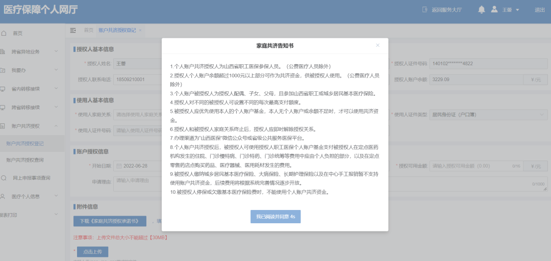 1、授权个人账户余额超过1000元以上部分的基金可作为共济资金,供被授权人使用。2、授权人可对不同的被授权人设置不同的支付额度/次。3、被授权人应优先使用本人的个人账户基金;本人个人账户余额不足时,才可以使用共济资金。4、共济资金仅限本省内使用。