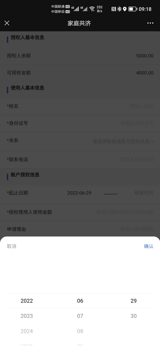 点击已添加的家庭成员,可以手动修改授权结束时间(结束时间只可选择当前结束日期之前)。