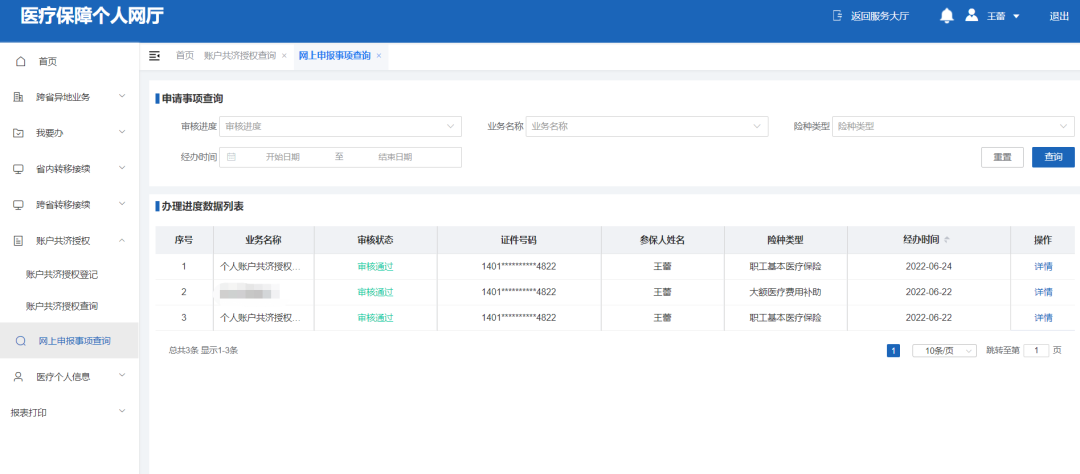 用户需要填写承诺书并上传;数据填写完成后点击提交。点击网上申报事项可以查询审核状态。