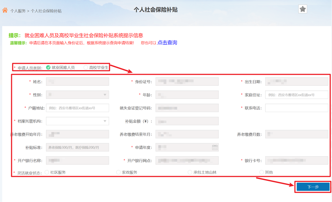 注:申请人员类别请选择“就业困难人员”;档案托管机构请选择“相对应的区县”