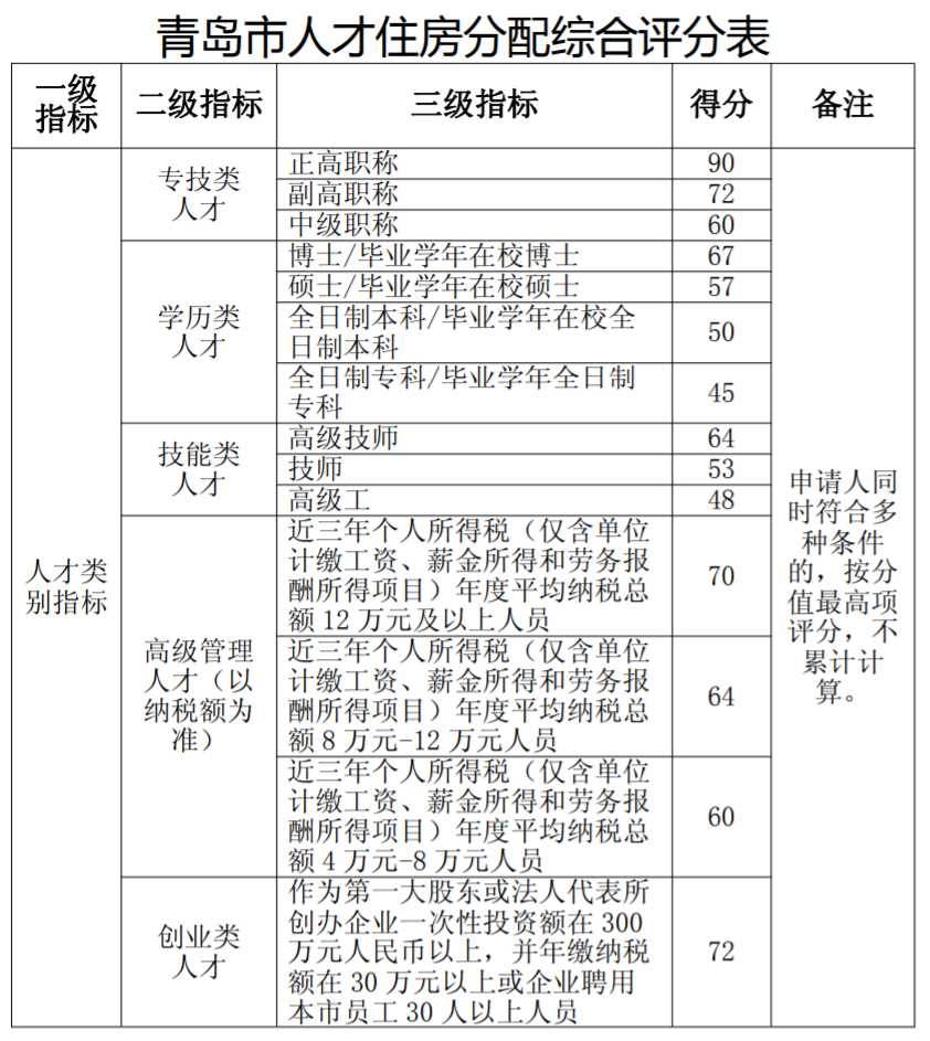 青岛西海岸人才住房分配评分标准(青岛市人才住房分配条件和评分标准细则)