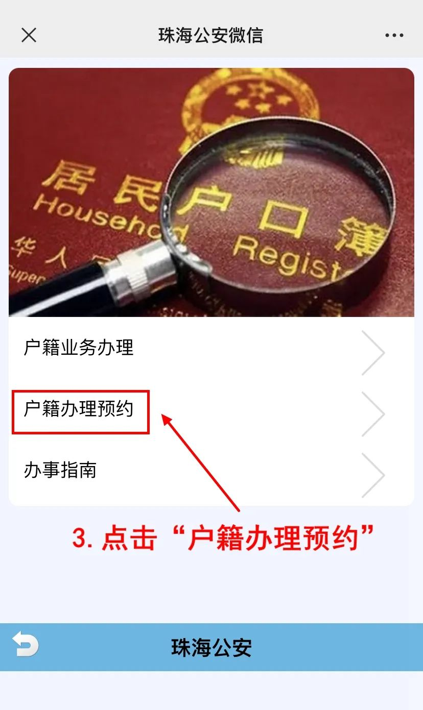 (一)网上预约流程:申办人关注“珠海公安”微信公众号——业务办理——户政业务——户籍办理预约——点击下方“预约”——业务类型(港澳台居民居住证)——选择行政区、受理点、日期、时间段——输入个人基本信息——提交——预约成功。